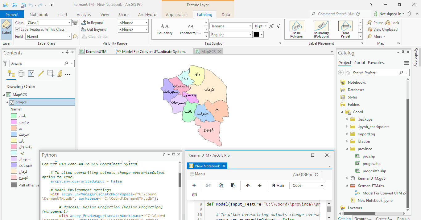 در این فیلم آموزشی ابتدا لایه اطلاعاتی مربوط به استان کرمان که دارای سیستم مختصات متریک است را در ArcGIS Pro نمایش میدهیم وهمزمان خصوصیات آن را تنظیم و تغییرات را در فایل پروژه ذخیره میکنیم. در ادامه یک مدل تهیه کرده و با آن سیستم مختصات را از متریک به جغرافیایی تغییر میدهیم. پس از اطمینان از فرایند کار مدل، آن را به اسکریپت پایتون تبدیل کرده و مورد بررسی قرار خواهیم داد. در پایان فایل اسکریپت تهیه شده را ذخیره ، نمایش و مورد استفاده قرار میدهیم.